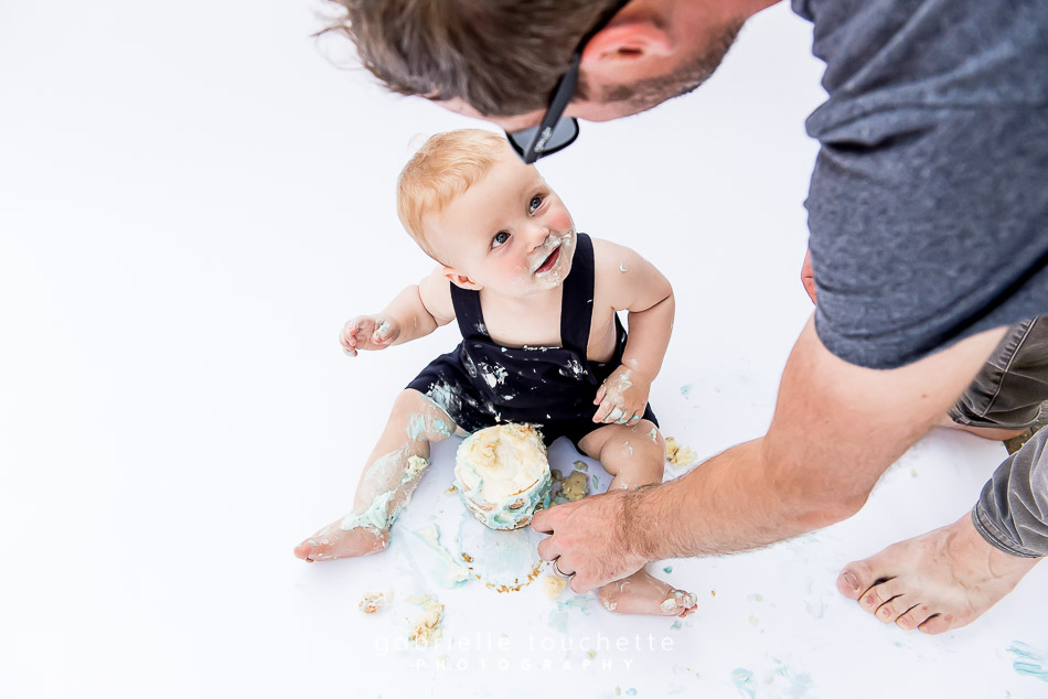 Micah turned one! To mark this exciting milestone, his parents invited me to their home to take some lifestyle family portraits as well as to take photos of a cake smash in their backyard. We used my white paper backdrop, set up the cake and Micah did the rest. 🙂 We finished with a bubble bath and he was so happy the entire time! Happy birthday Micah! You are so cute!